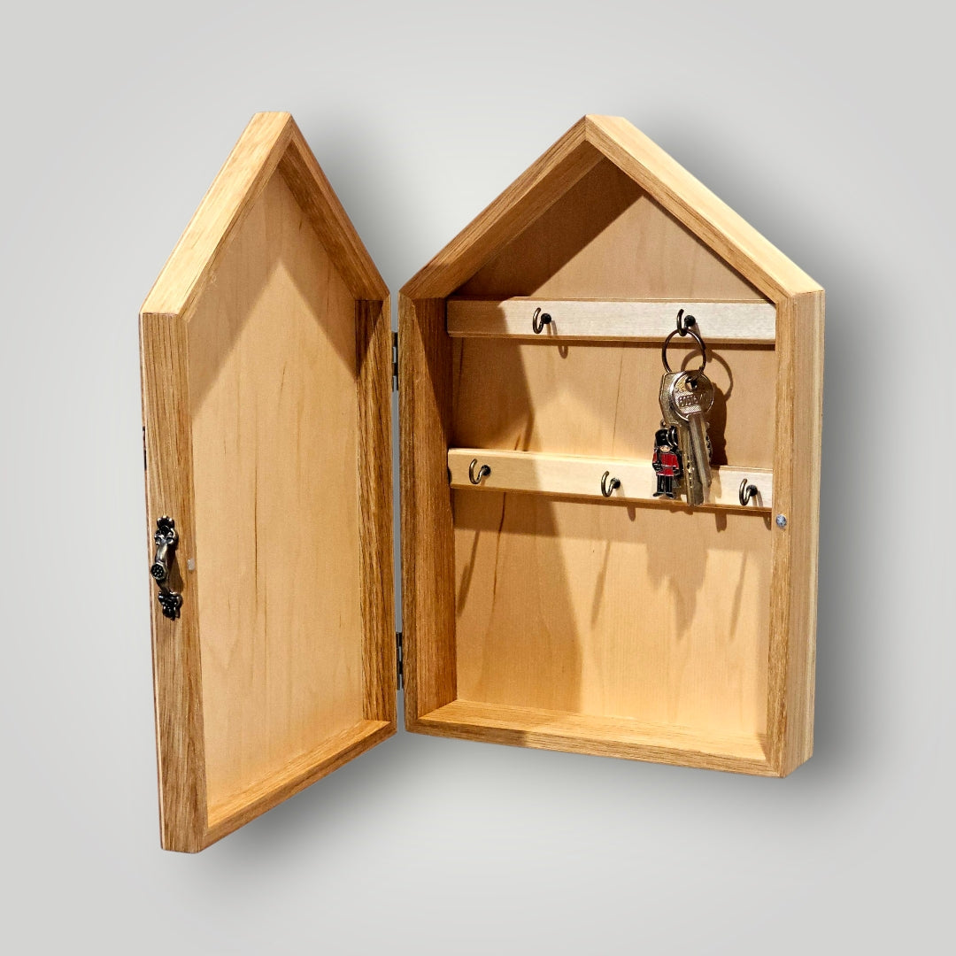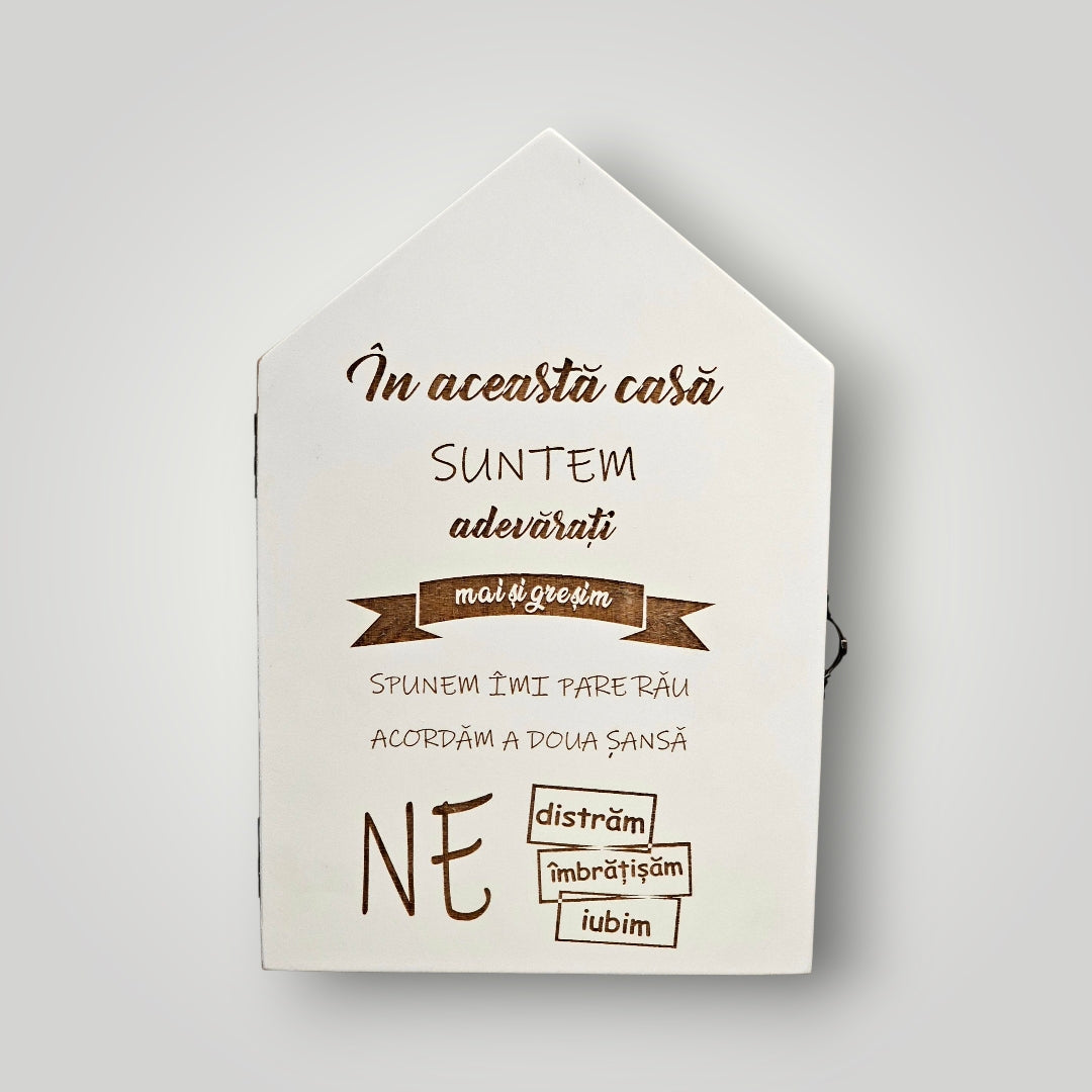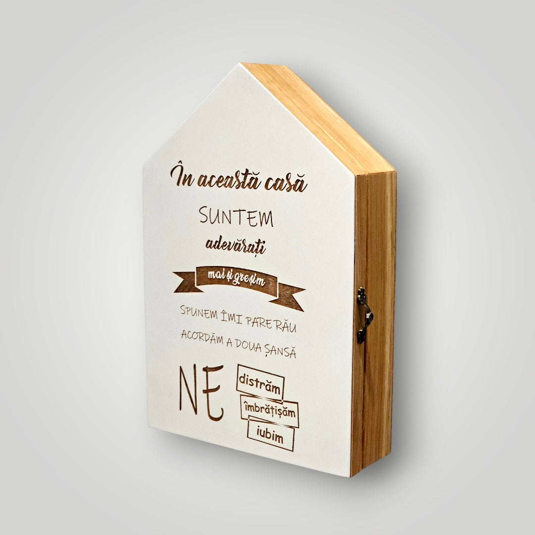 Dacă apreciezi ordinea și estetica minimalistă, această Căsuță cu Ușă pentru Chei este alegerea perfectă. Ușa nu doar protejează cheile de praf și priviri, dar transformă o aglomerare de brelocuri într-un element decorativ discret și sofisticat.