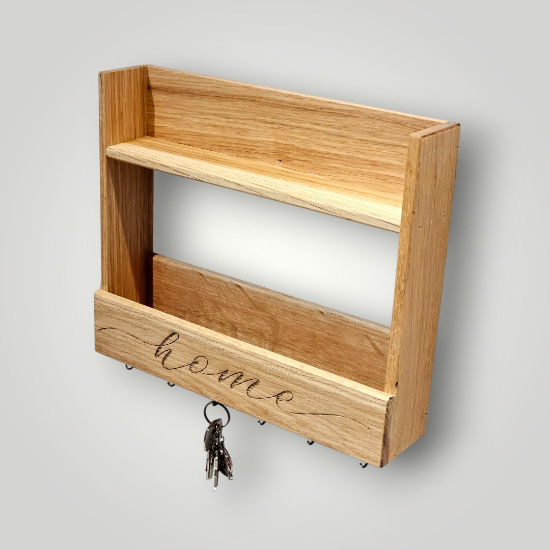🌳 Suport din Lemn de Stejar Premium pentru Chei – Eleganță, Raft și Buzunar Multifuncțional