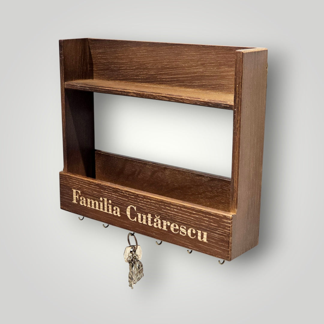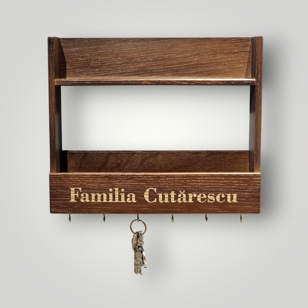 Cârlige: Dotat cu 6 cârlige din metal, oferă un loc sigur și ordonat pentru toate cheile familiei.