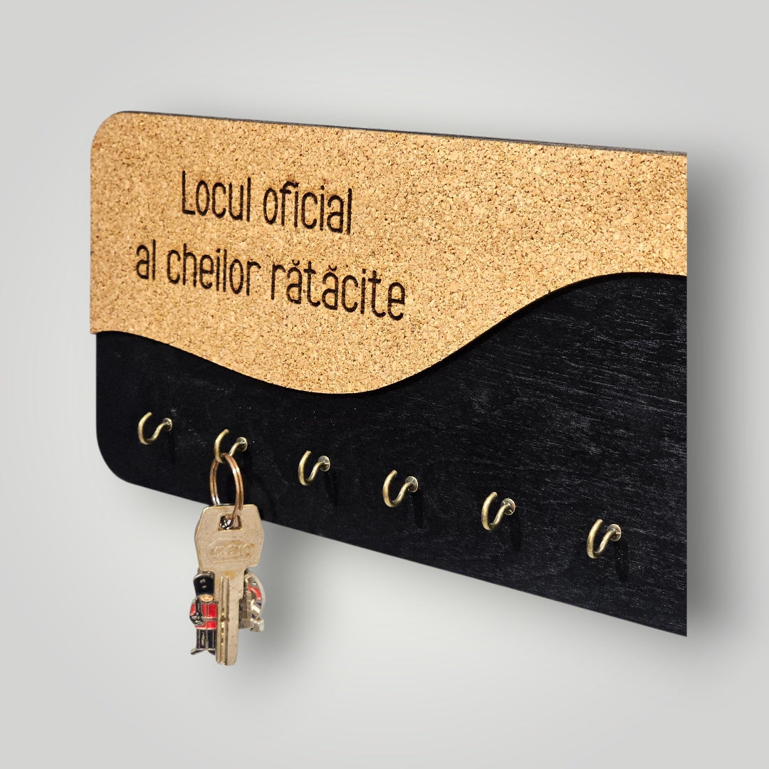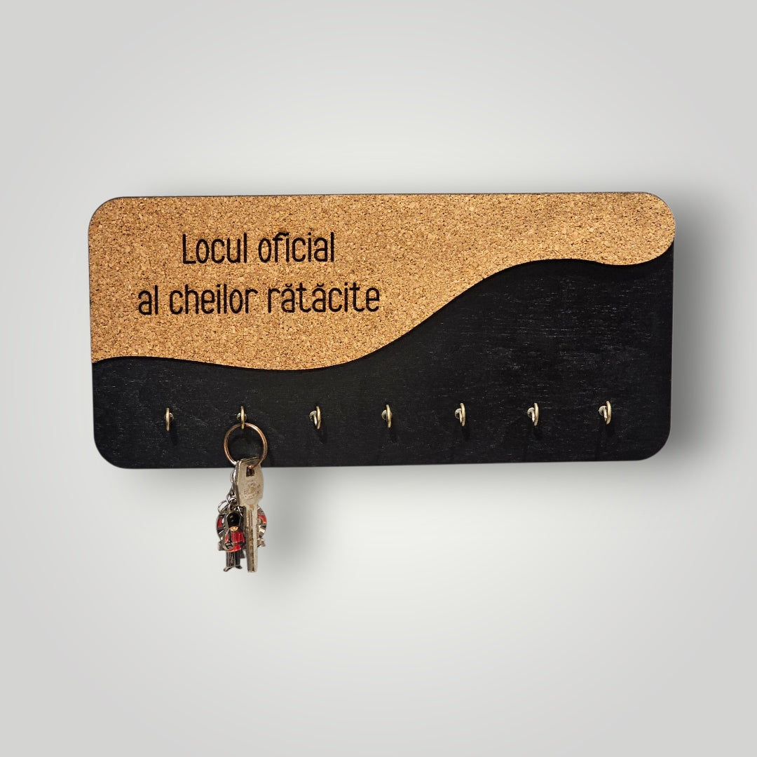 🌿 Suport din Placaj și Plută pentru Chei – 7 Cârlige + Spațiu pentru Personalizare