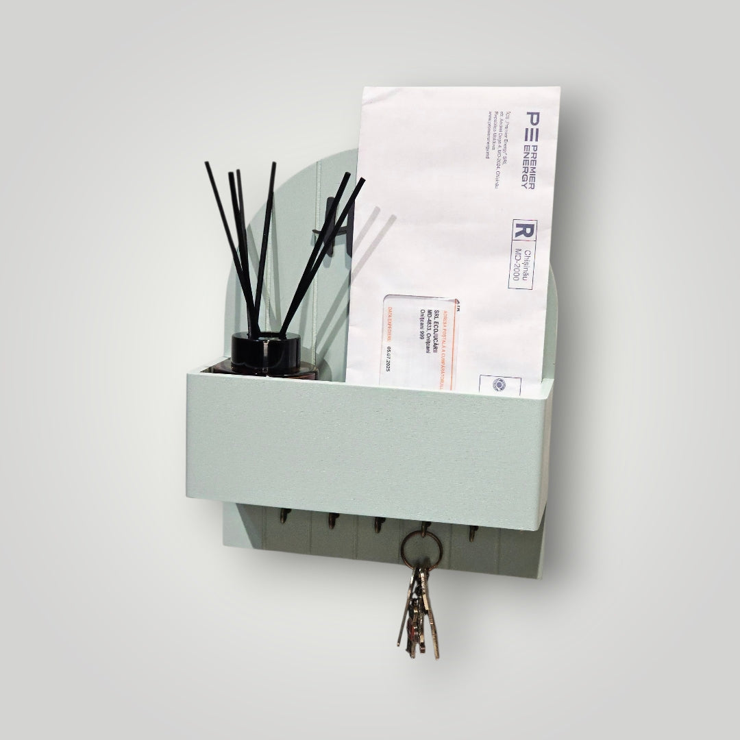 Nu doar îți păstrează cheile în ordine, dar te ajută să nu mai rătăcești documente și plicuri importante! Suportul nostru de perete cu buzunar integrat este soluția inteligentă pentru a gestiona haosul zilnic de la intrarea în casă.