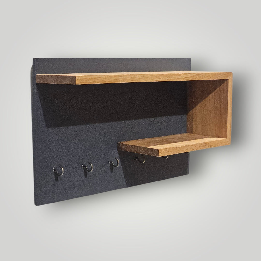 Îți dorești o intrare organizată, dar nu ai loc pentru mobilier voluminos? Suportul nostru pentru chei cu raft oferă soluția inteligentă, combinând un organizator eficient pentru chei cu un spațiu util pentru obiectele de mână.